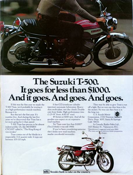 KT-120 'Bearcat' "Cycle World" (1968) T-500 'Titan' "Cycle Guide" (1973)