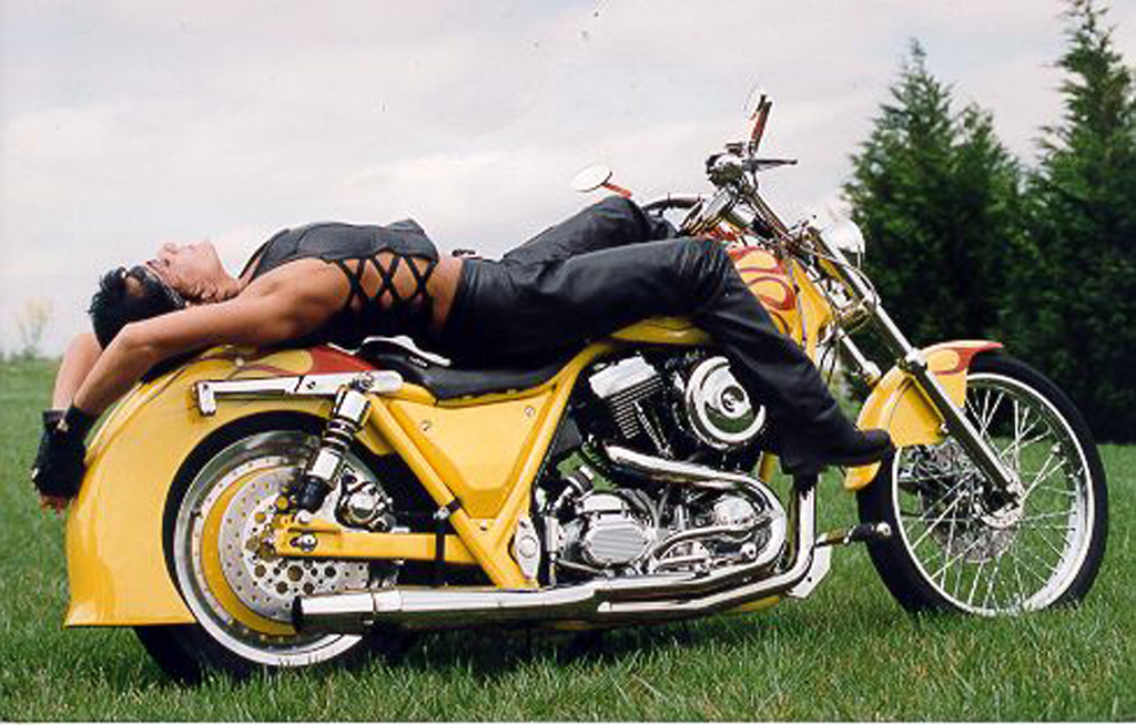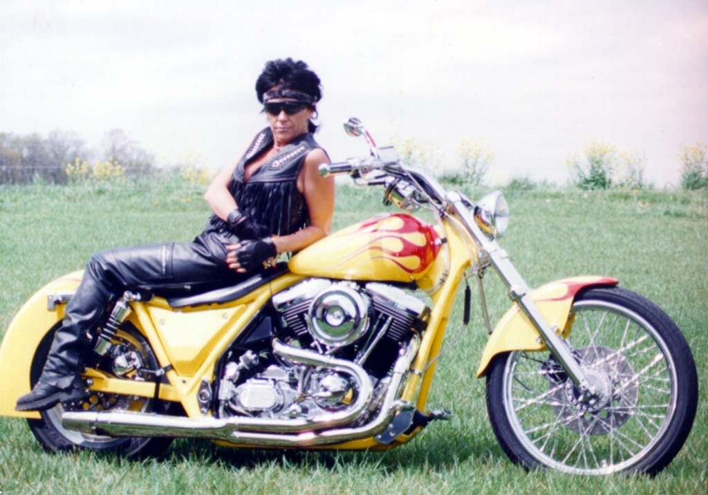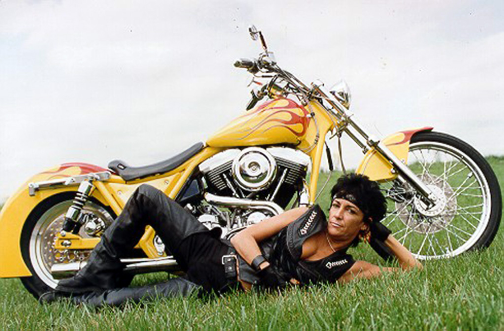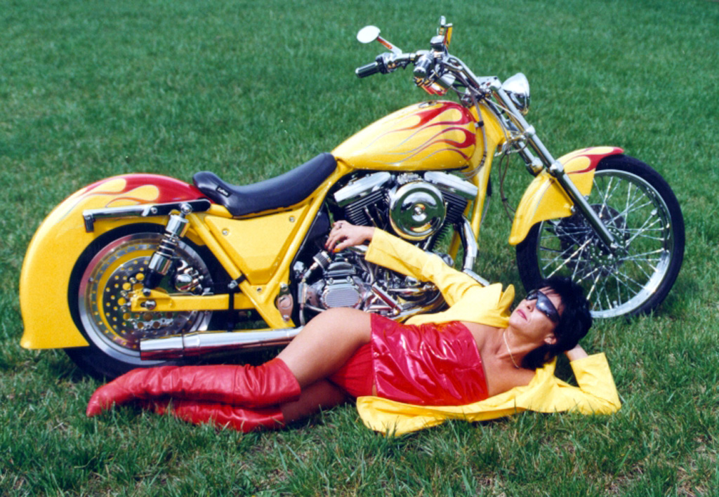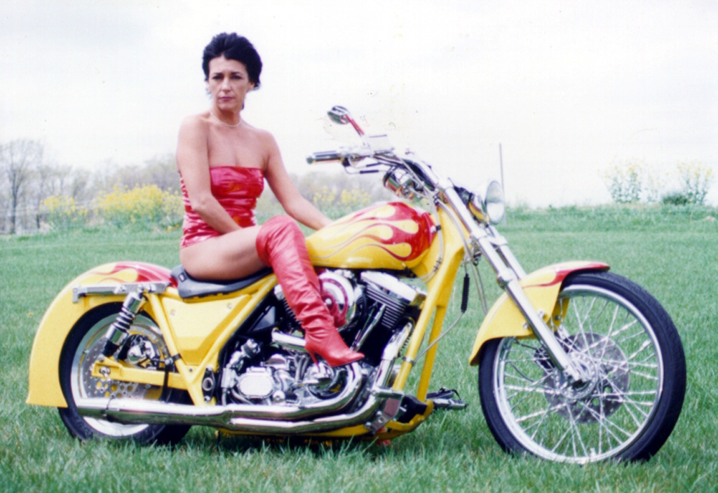 Vickie posing with nice custom Harley