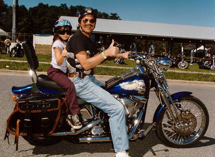 Grace and I go for a little jaunt on Steve's '96 Springer Softail